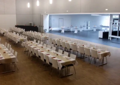 Dank ihrer Multifunktionalität, ihrem hohen technischen Standard sowie Barrierefreiheit ist sie der ideale Treffpunkt für Hochzeiten, Geburtstagsfeiern, Konfirmationen, Kongresse, Tagungen und sonstige Feiern/ Events.