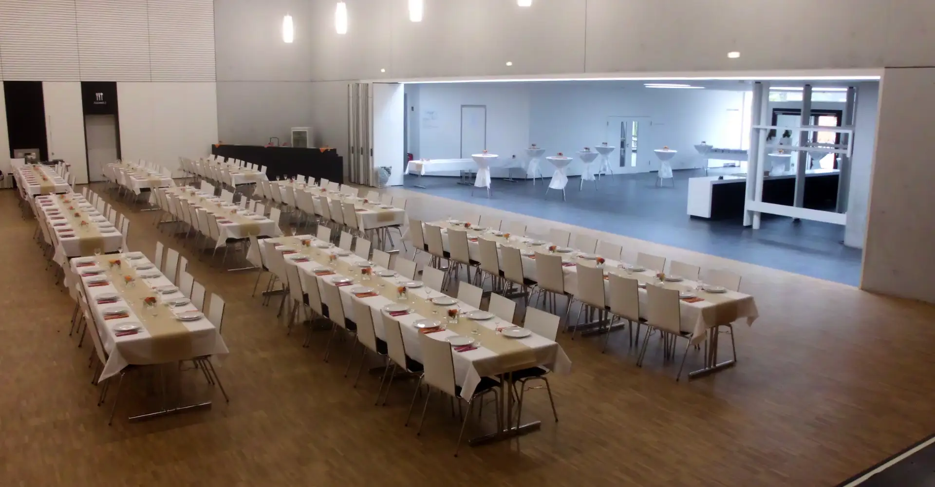 Dank ihrer Multifunktionalität, ihrem hohen technischen Standard sowie Barrierefreiheit ist sie der ideale Treffpunkt für Hochzeiten, Geburtstagsfeiern, Konfirmationen, Kongresse, Tagungen und sonstige Feiern/ Events.